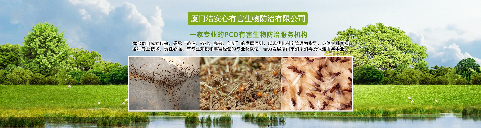 廈門潔安心有害生物防治有限公司成立于2020年是一家專業(yè)的PCO有害生物防治服務(wù)機構(gòu),是經(jīng)廈門市工商局注冊登記、廈門市白蟻防治管理所、PCO協(xié)會批準(zhǔn)的城市害蟲綜合治理公司,專業(yè)殺臭蟲、殺白蟻、殺蟲、滅老鼠的公司,是集廈門白蟻防治、廈門殺蟲、滅鼠滅四害、廈門殺臭蟲、廈門殺白蟻、廈門滅蟑螂治理銷售于一體的大型專業(yè)廈門有害生物環(huán)保服務(wù)公司。主要從事新建、擴建、改建、裝飾裝修單位建筑物的白蟻防治和白蟻預(yù)防工程,同時從事工廠、酒店、企事業(yè)單位、住宅小區(qū)和家庭的”四害”滅治和白蟻防治服務(wù),長期向各類型客戶提供廈門白蟻防治、廈門殺蟲、滅四害,廈門殺臭蟲、廈門殺白蟻、廈門滅鼠等優(yōu)質(zhì)服務(wù)。